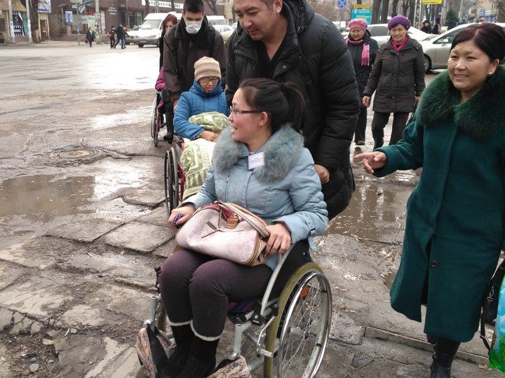 Как рассказала одна из организаторов практического семинара, приуроченного к Всемирному дню инвалидов, Сыйнагуль Омуралиева, учителя детского реабилитационного центра «Умут - Надежда» решили сами сесть в коляски и на себе прочувствовать отношение общества к людям в таком положении.