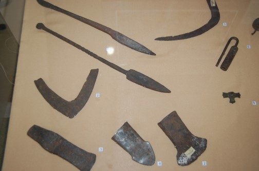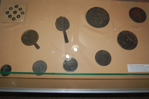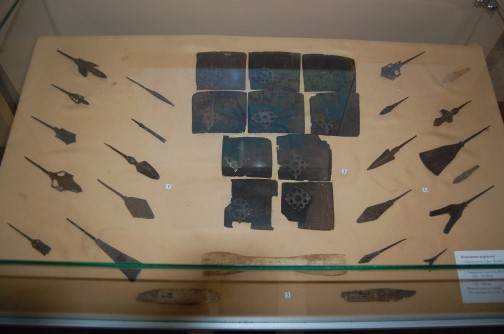 Минусинский музей представил множество мечей, кинжалов, ножей, наконечников стрел разных форм и конфигураций (черешковые, плоские, в форме двухконечной вилки, в форме шестиугольника), которые использовали енисейские кыргызы в боях против тюрок, уйгуров и монголов. Признаться, дух захватило при виде этих древних вещей и мысли о том, как же давно и очень искусно они были сделаны мастерами. Удивили в экспозиции ложки из бронзы; привезенные из Китая (как гласила надпись рядом с экспонатами) железные основания под зеркальца и куча крайне необходимых для жизни и быта предметов.