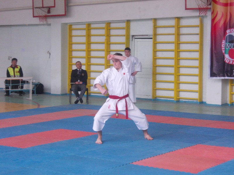 В турнире участвовали 100 человек из Оша, Джалал-Абада, с Иссык-Куля, Кара-Балты и Бишкека. Борьба развернулась в трех возрастных группах: 14-15 лет (кадеты), 16-17 лет (юниоры), 18 лет и старше. Из лидеров замечены участники Азиатских игр Гянжали Абасов, Адилет Шадыканов, Урмат Абдилаев, Бакай Дуйшеев. Разыграно 34 комплекта наград. Вначале проходили состязания по программе «индивидуальное ката». Простым языком, ката – это последовательность движений, связанных принципами ведения поединка с воображаемым противником. Изучая движения, нужно повторять их до автоматизма. Побеждает тот, кто обладает самой лучшей техникой.