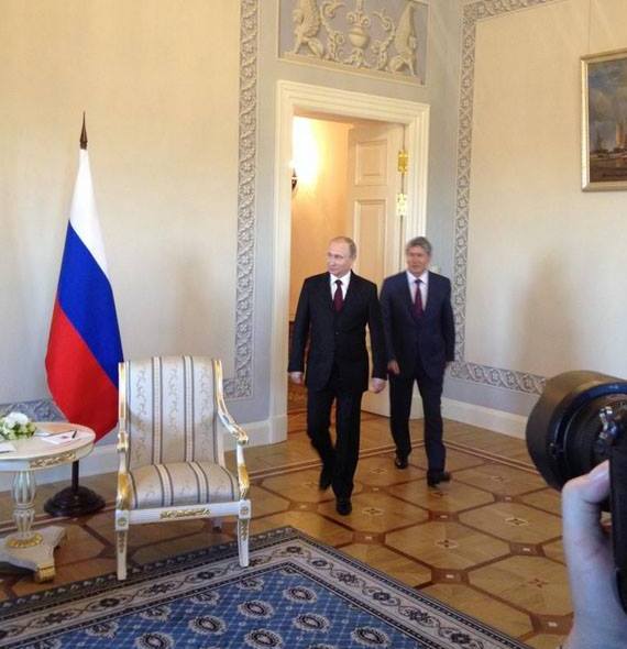 Как отметил пресс-секретарь президента РФ Дмитрий Песков, встреча проходит в Санкт-Петербурге, так как «здесь учится дочка Атамбаева: ему так было удобней, и Путин пошел навстречу».