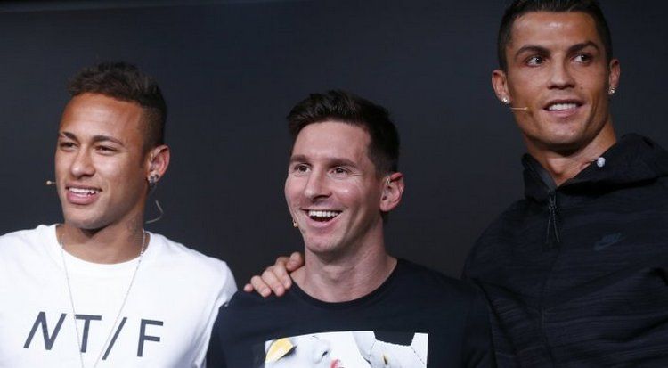 Фото REUTERS/Arnd Wiegmann. Слева направо — Неймар, Лионель Месси и Криштиану Роналду.