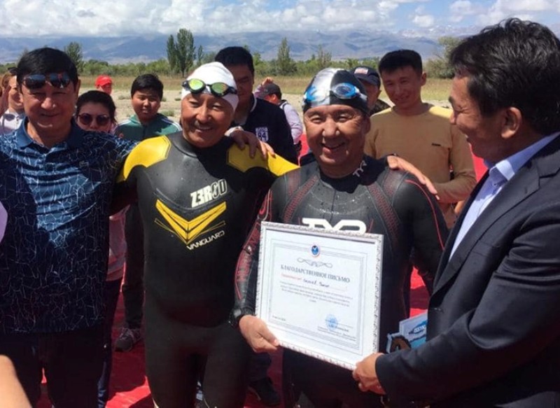 «Сыновья Данияр и Эмиль тоже решили участвовать в нынешнем заплыве. Я был рядом, подбадривая их, — отметил он. — Плавание на открытой воде очень популярно в мире. Тысячи энтузиастов преодолевают реки, озера, моря, проливы и даже океаны. Вместе с организаторами приложу максимум усилий, чтобы заплыв через Иссык-Куль уже в 2020-м стал широко известным международным событием».