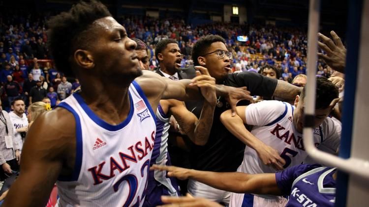 Матч регулярного сезона студенческой лиги между Университетом Канзаса и Государственным канзасским университетом завершился массовой дракой, в которой участвовали и болельщики. Об этом сообщило РИА Новости.