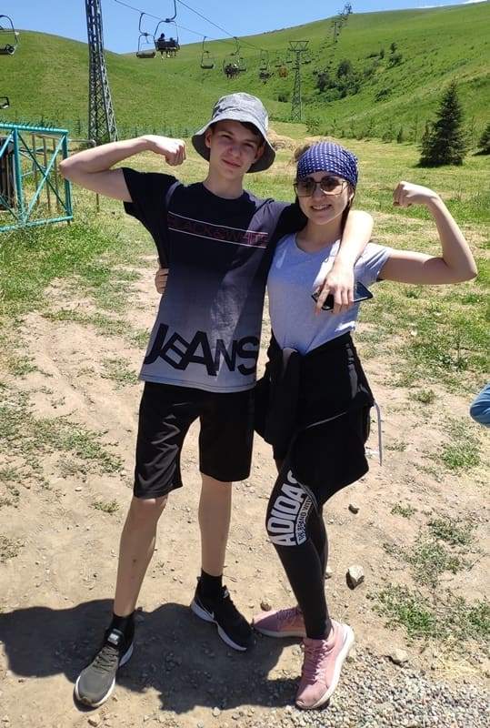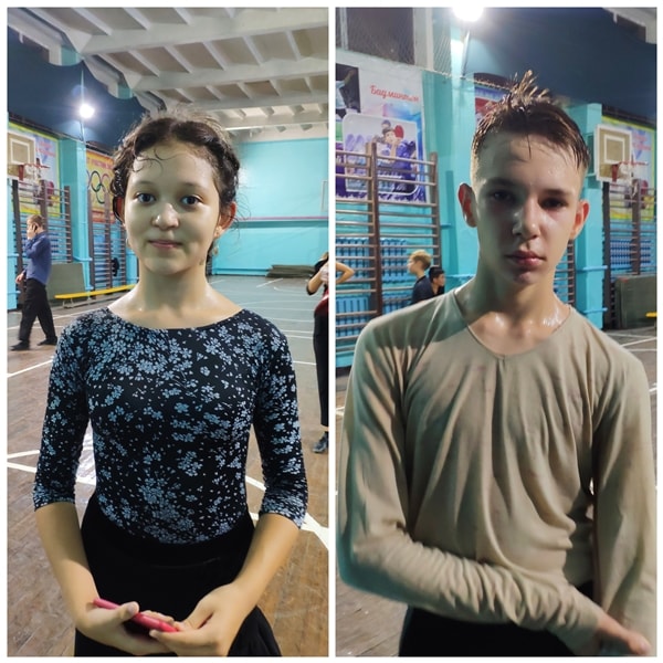 Они родились в Бишкеке. Ему 15 лет, ей 13. Тренируются в студии «Алексис» у Алексея Кибкало и Татьяны Когадей. Их дуэту пять лет.