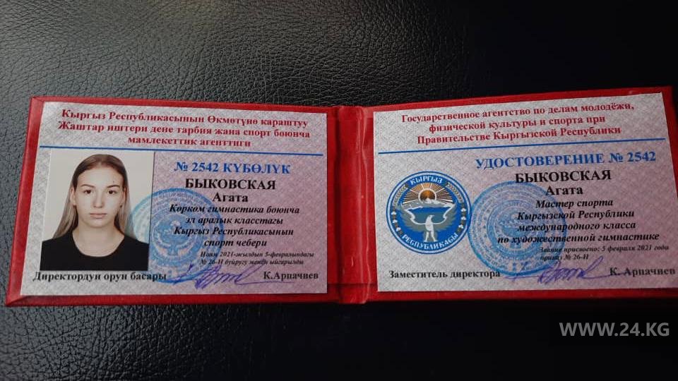 Отмечается, что звание присвоено согласно Единой спортивной классификации Кыргызстана. Кроме Агаты Быковской, в этом году его получила Дарья Шлей, которая занимается таэквондо ИТФ. Звания «Мастер спорта КР» также присвоены 13 спортсменам, представляющим различные виды спорта.