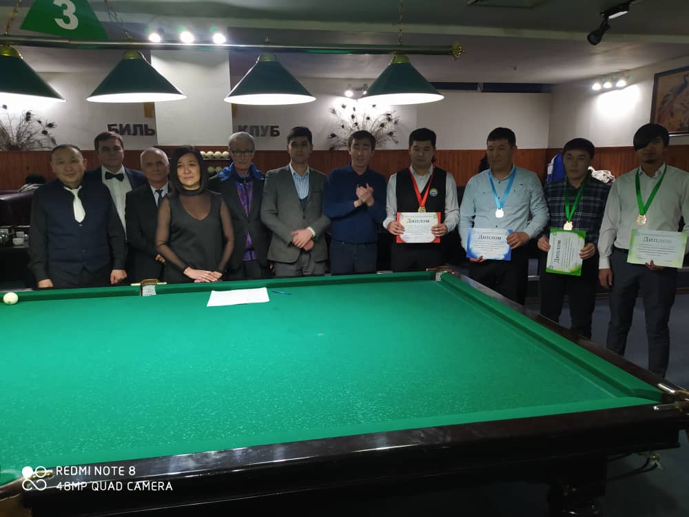 «Турнир проводился с целью определения чемпионов республики, дальнейшего развития бильярдного спорта в Кыргызстане. Первое место занял Арсен Каленбаев, второе — Бакыт Болоталиев, третье — Абдулла Тагаев и Кайрат Абсатаров. В церемонии награждения приняли участие начальник отдела анализа и развития спорта высших достижений госагентства по делам молодежи, физической культуры и спорта Марат Аскарбеков, президент Федерации бильярдного спорта КР Каныбек Сагынбаев, генеральный секретарь федерации Наргиза Рыскулова и представители Дирекции по неолимпийским видам спорта», — сообщили в госагентстве.