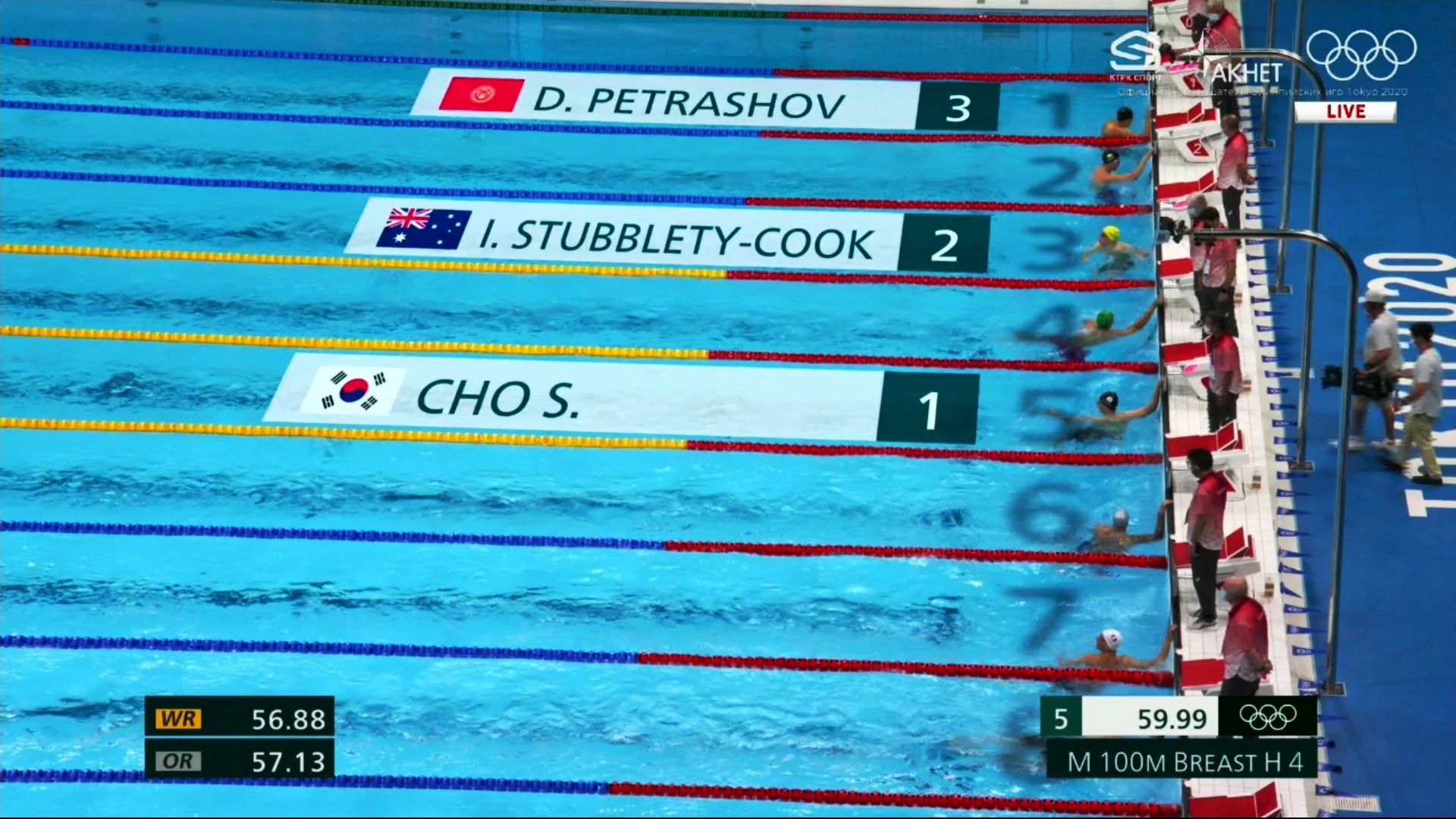 Денис Петрашов установил новый рекорд Кыргызстана на Олимпиаде в Токио в заплыве на 100 метров брасом. Он преодолел эту дистанцию за 1 минуту и 0,23 секунды. Прежний рекорд республики — 1 минута 0,94 секунды также принадлежал ему.