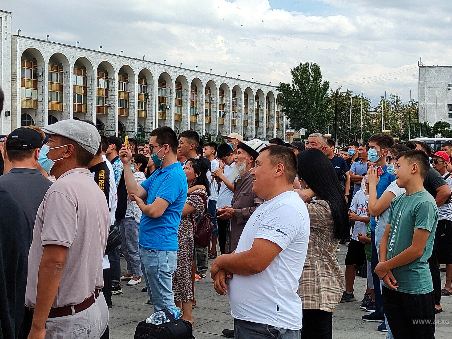 Крики, лозунги, свисты на площади Ала-Тоо — на экране заметили Айсулуу Тыныбекову. Публика взорвалась эмоциями.