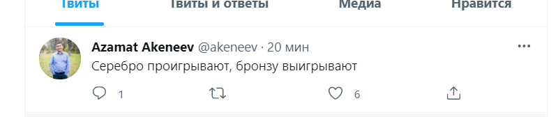 У других пользователей восторга было меньше. Экономический эксперт Азамат Акенеев, комментируя выступление спортсменов, написал: «Серебро проигрывают, бронзу выигрывают».Другой кыргызстанец Урмат Насыкулов принял проигрыш Акжола Махмудова с сожалением. «К сожалению, Акжол Махмудов проиграл финал в схватке с венгром со счетом 2:1. К счастью, у нас есть первая медаль на Олимпиаде — серебро! Медаль за второе место», — написал он.