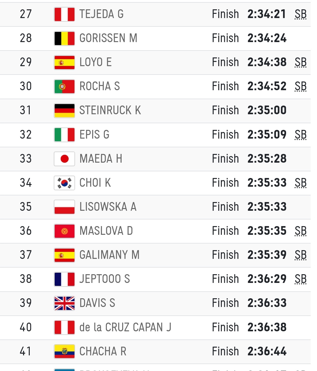Еще один легкоатлет из Кыргызстана Нурсултан Кенешбеков занял 35-е место на дистанции 5 тысяч метров.