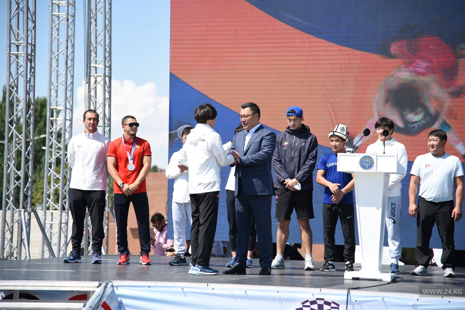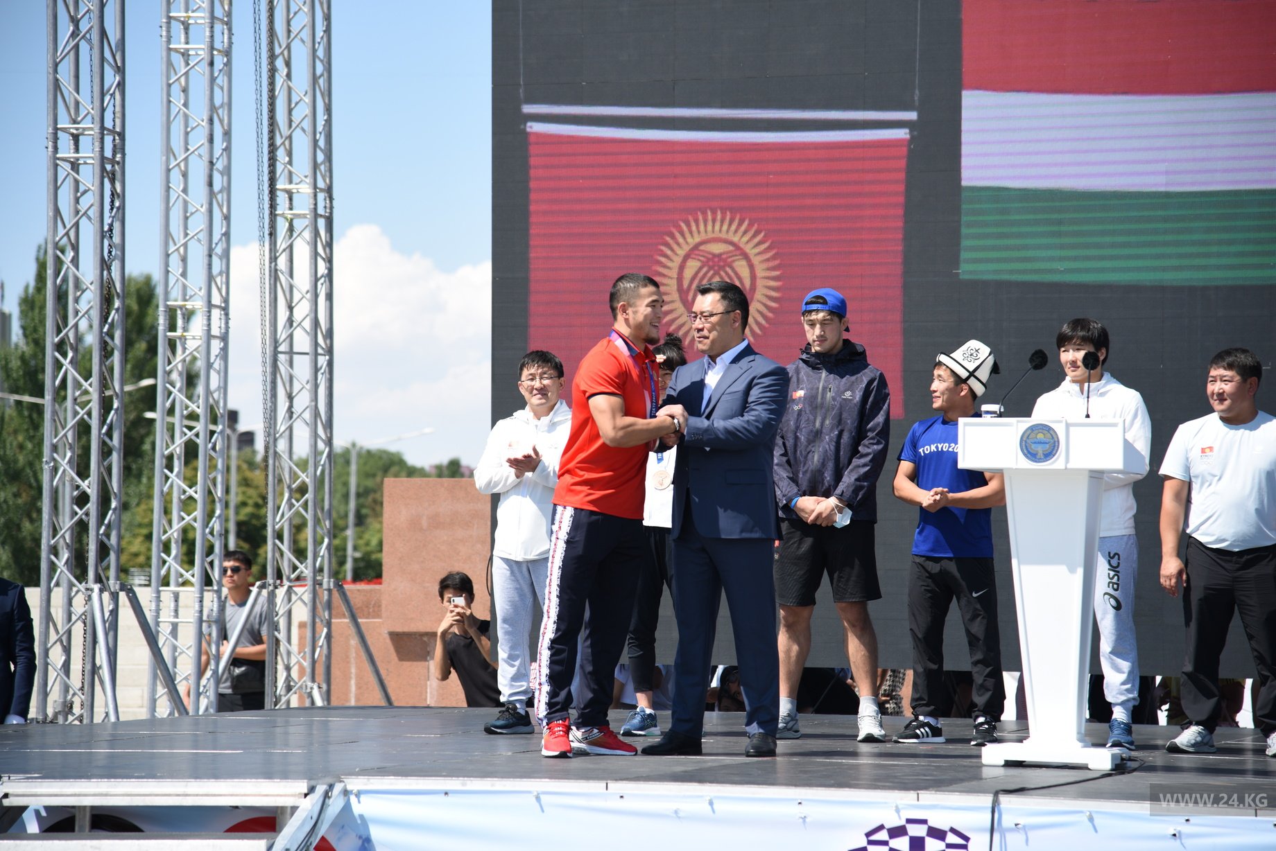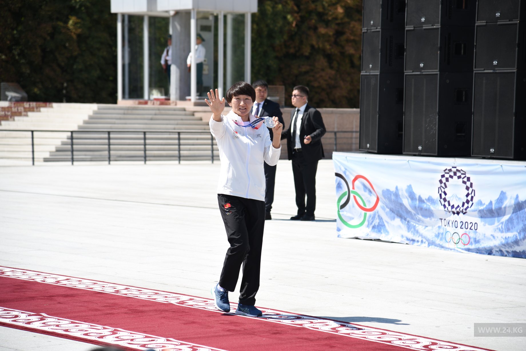 На площадь Ала-Тоо приехали медалисты и участники Олимпиады-2020 в Токио.