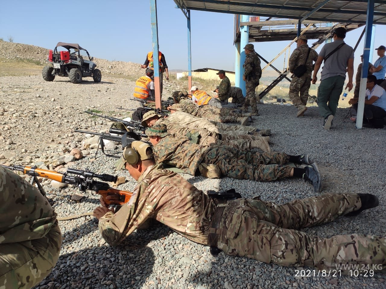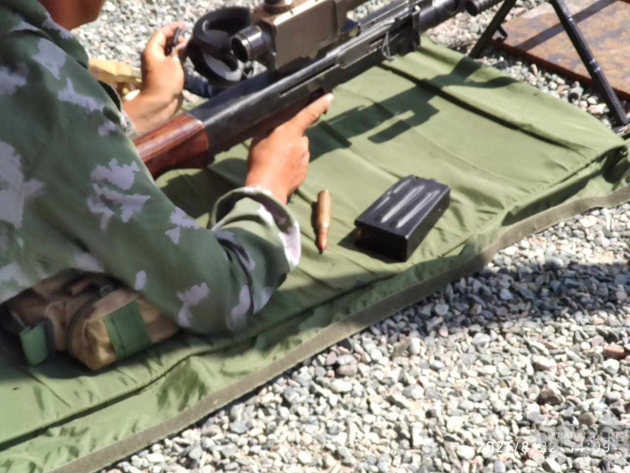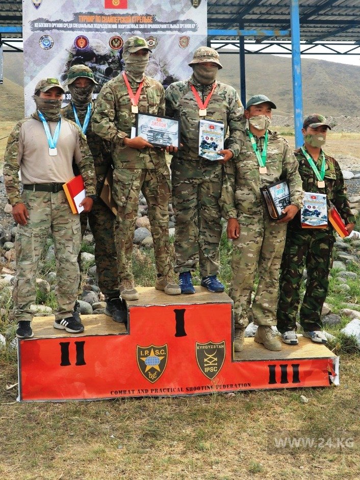 «Помимо общевойсковых и полицейских упражнений, стрелки отрабатывали эвакуацию раненых и упражнение «сломанный прицел», по условиям которого судья сбивал настройки оптического прицела, заклевывает скотчем ручки регулировки, а стрелку приходится стрелять практически вслепую», — рассказал 24-kg.com руководитель турнира Эркин Усубалиев.