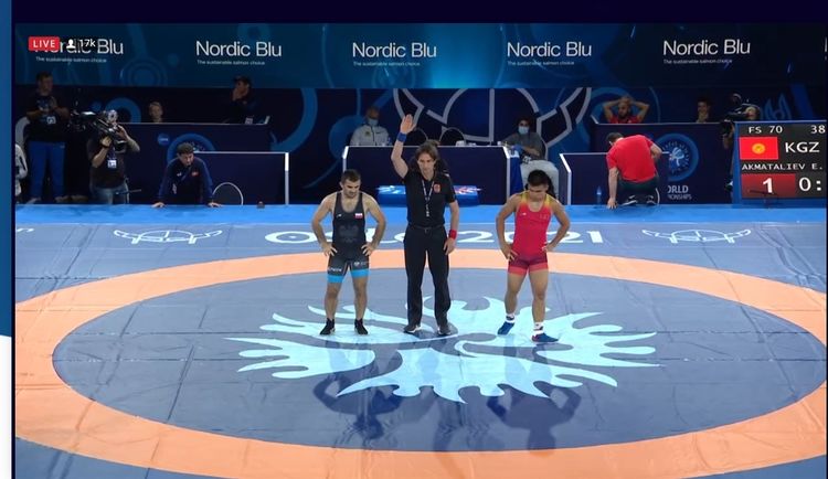 Эрназар Акматалиев в весовой категории 70 килограммов по вольной борьбе в финале чемпионата мира проиграл Магомедмураду Гаджиеву (Польша).