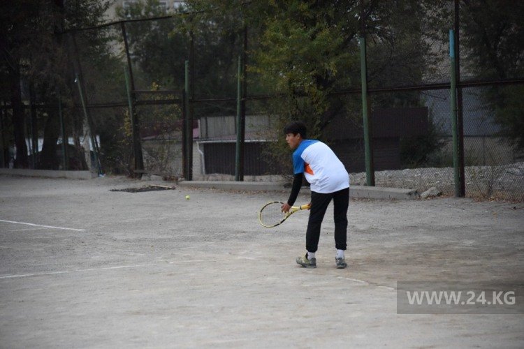Здесь же расположены и уникальные, единственные в Бишкеке грунтовые теннисные корты. Состояние их удручающее. У школы нет даже собственного помещения. Небольшой подвал арендуют у Госгеологии за 260 тысяч сомов в год.