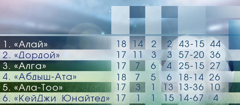 Как сообщается, по итогам тура на счету «Алая» стало 44 очка. Команда провела уже 18 игр из 20 запланированных. В оставшихся матчах ошанам достаточно набрать два очка, чтобы обеспечить себе первое место. «Дордой» идет вторым, имея 36 очков после 17 игр. Далее следуют «Алга» (27 очков) и «Абдыш-Ата» (26 очков).