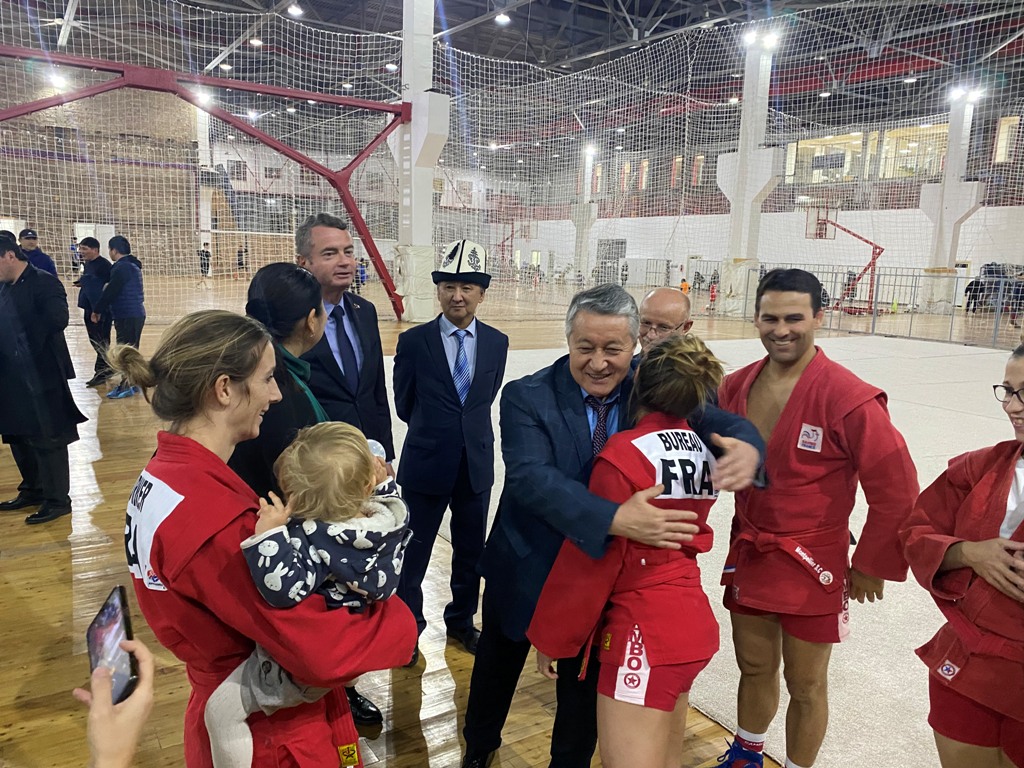 «В церемонии открытия участвовали министр образования и науки Болотбек Купешев и посол Франции в КР Франсуа Делаус. Чиновник поздравил самбистов с началом программы «Самбо в школе» и пожелал новых успехов. Посол поздравил спортсменов с Международным днем самбо и заверил в дальнейшей поддержке развития женского самбо», — проинформировали редакцию.