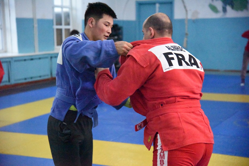 «Например, мы во Франции привыкли больше работать в партере. Наши кыргызские коллеги предпочитают работу в стойке. Есть свои интересные захваты, которые мы обычно не практикуем», — объясняет тренер.