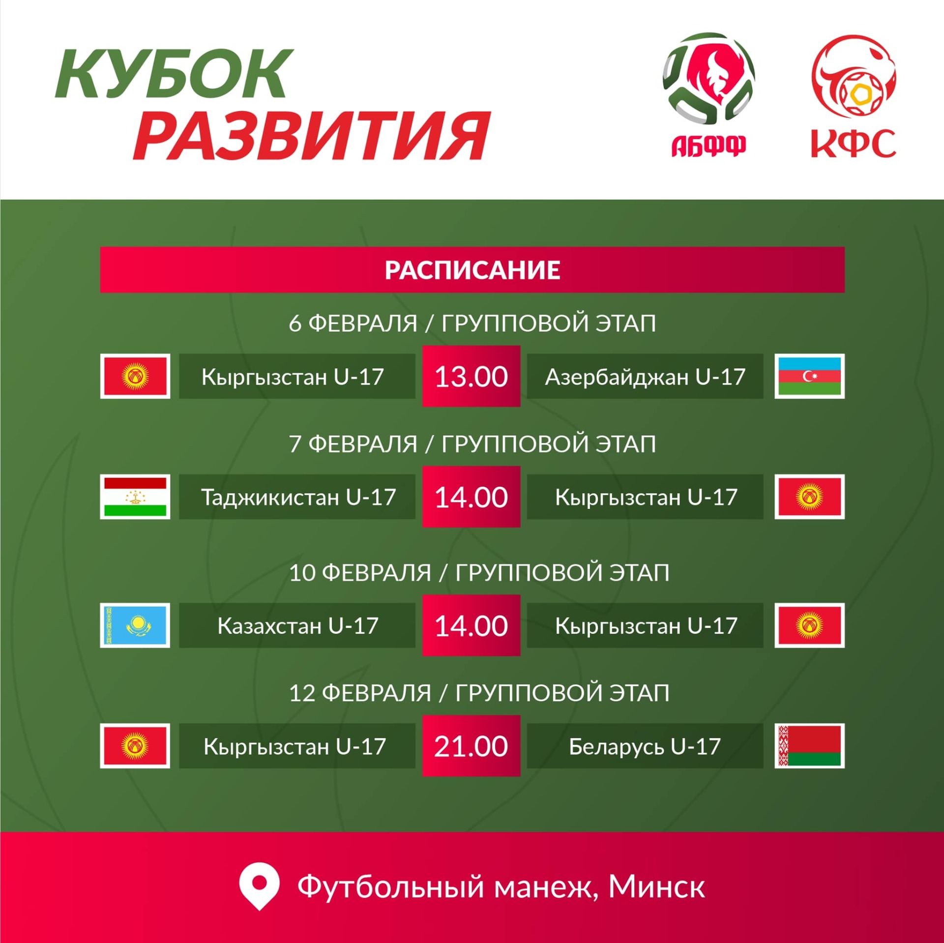 В городе Минске 6 февраля стартует 18-й международный турнир «Кубок Развития 2022». В Кыргызском футбольном союзе озвучили расписание турнира.