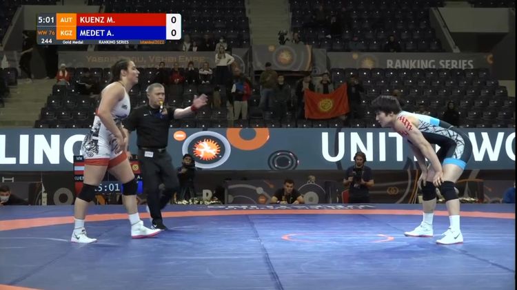 Ранее кыргызстанка одержала победу над россиянками Екатериной Букиной и Кристиной Шумовой, а также немецкой спортсменкой Франци Рейделт.