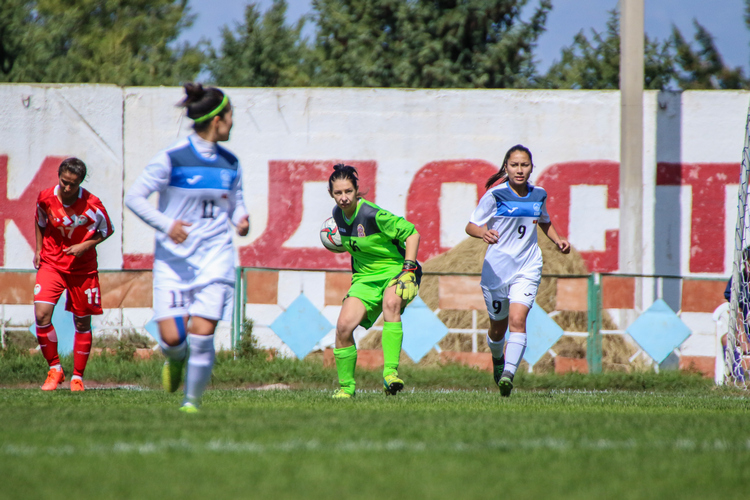 — В моей первой команде «Азалия Биринчи» была свободна позиция вратаря. Это был первый в Кыргызстане профессиональный женский футбольный клуб. Когда я впервые вышла полевым игроком, не знала куда бежать. Голова была кругом. Тренер посмотрел на меня и сказал: «Постой-ка в воротах...». Я встала, и у меня начало получаться. Все мячи летели в меня, как заколдованные. Не я за ними, а они за мной.