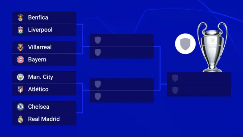 - победитель пары «Вильярреал» — «Бавария» сыграет с победителем пары «Бенфика» — «Ливерпуль».