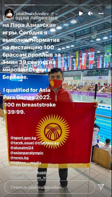 Жалалдин Абдувалиев выполнил отборочный норматив на Азиатские параигры-2022. Об этом в истории Instagram сообщил сам спортсмен.