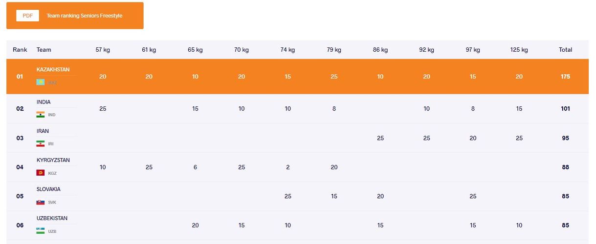 Первое место у Казахстана, второе у Индии, третье — Ирана.