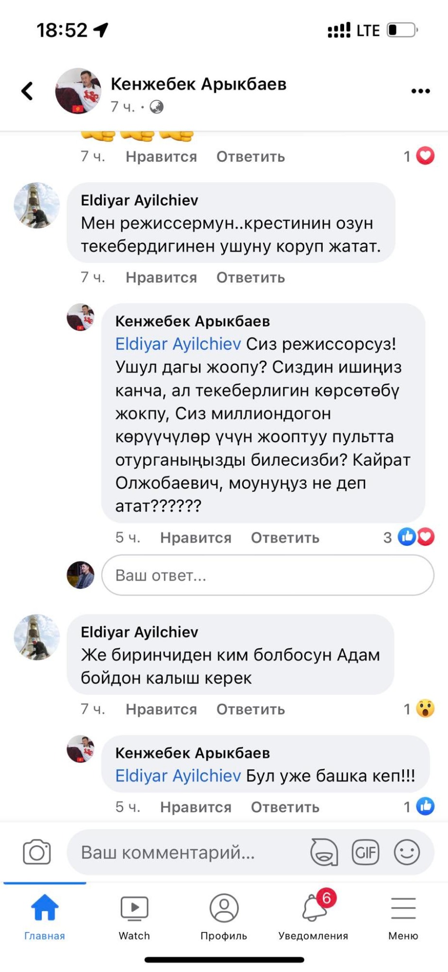 Под этой публикацией вчера, еще до начала игры со сборной Таджикистана, режиссер НТРК Эльдияр Айылчиев разместил комментарий, признав, что Александра Крестинина специально не показывают в прямом эфире. «Крестинин получил результат своей гордыни», — написал он.