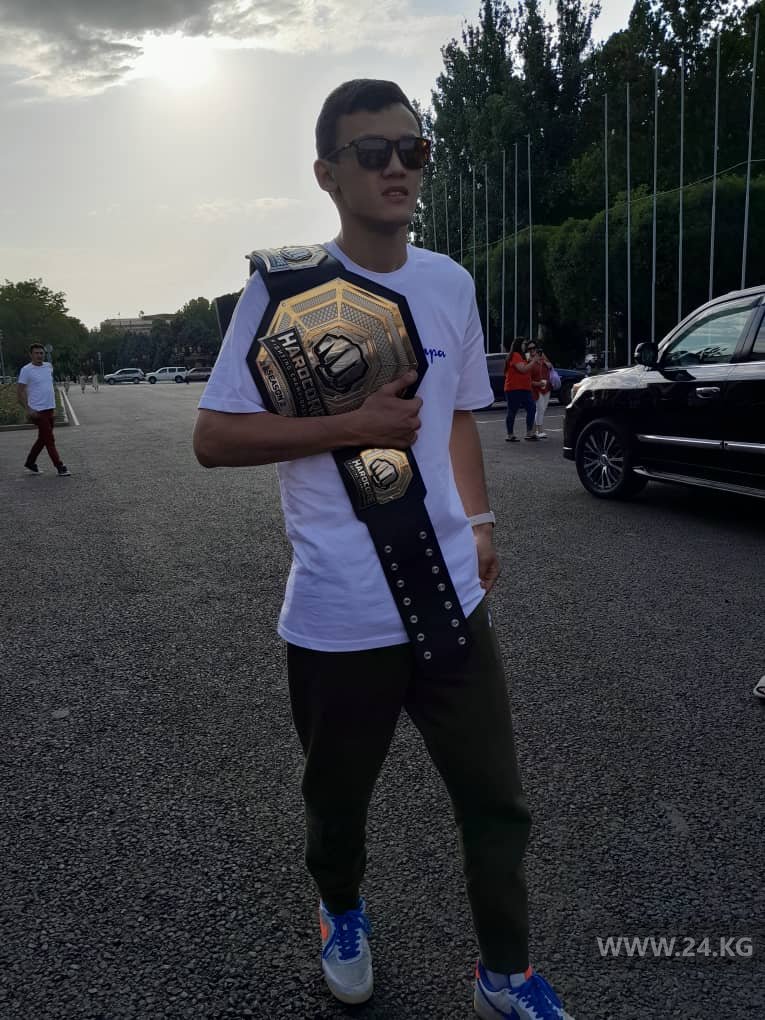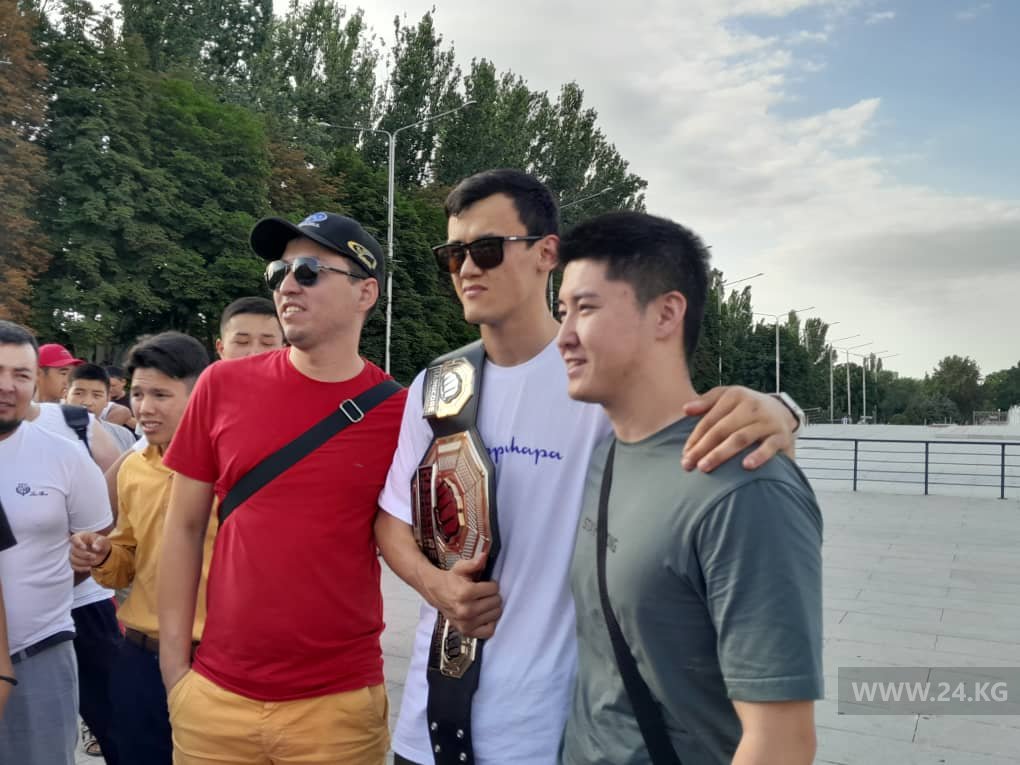 Уроженца Кыргызстана с поясом чемпиона видели на площади Ала-Тоо. Спортсмен охотно фотографировался с желающими.