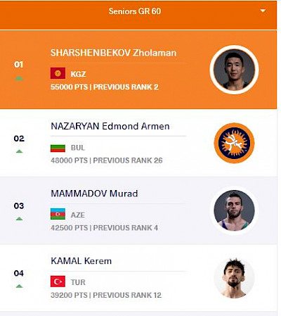 В рейтинге до 60 килограммов также есть спортсмены из Болгарии, Азербайджана и Турции.