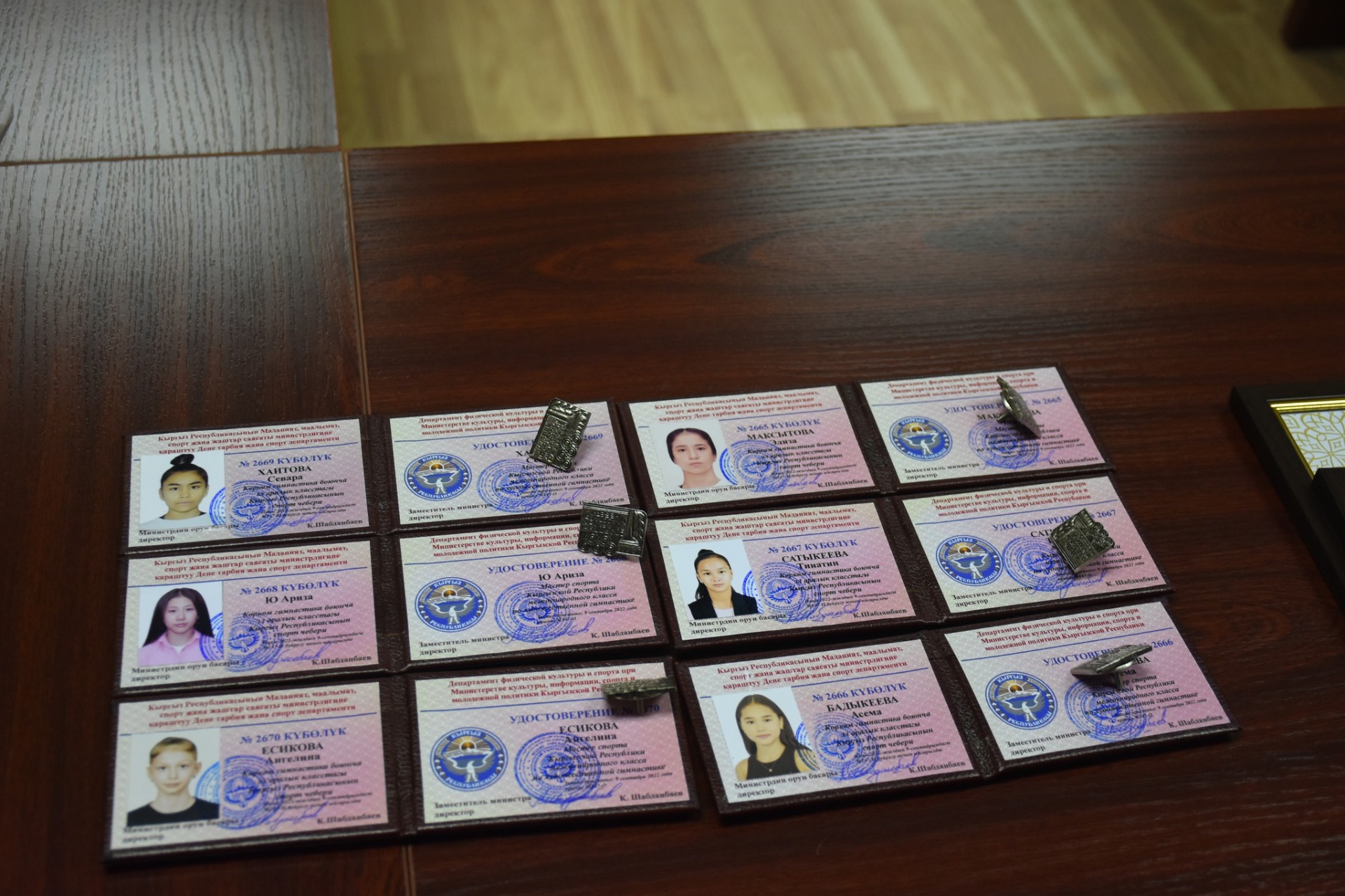 В ведомстве уточнили, что звания гимнасткам присвоены после выполнения требований единой спортивной классификации Кыргызстана. Их получили Элиза Максытова, Ариза Ю, Тинатин Сатыкеева, Ангелина Есикова, Асема Бадыкеева, Эрика Ерикова, Злата Якухина, Акылай Абдыкадырова, Арина Арапбаева, София Ким и Адинай Ермекова.