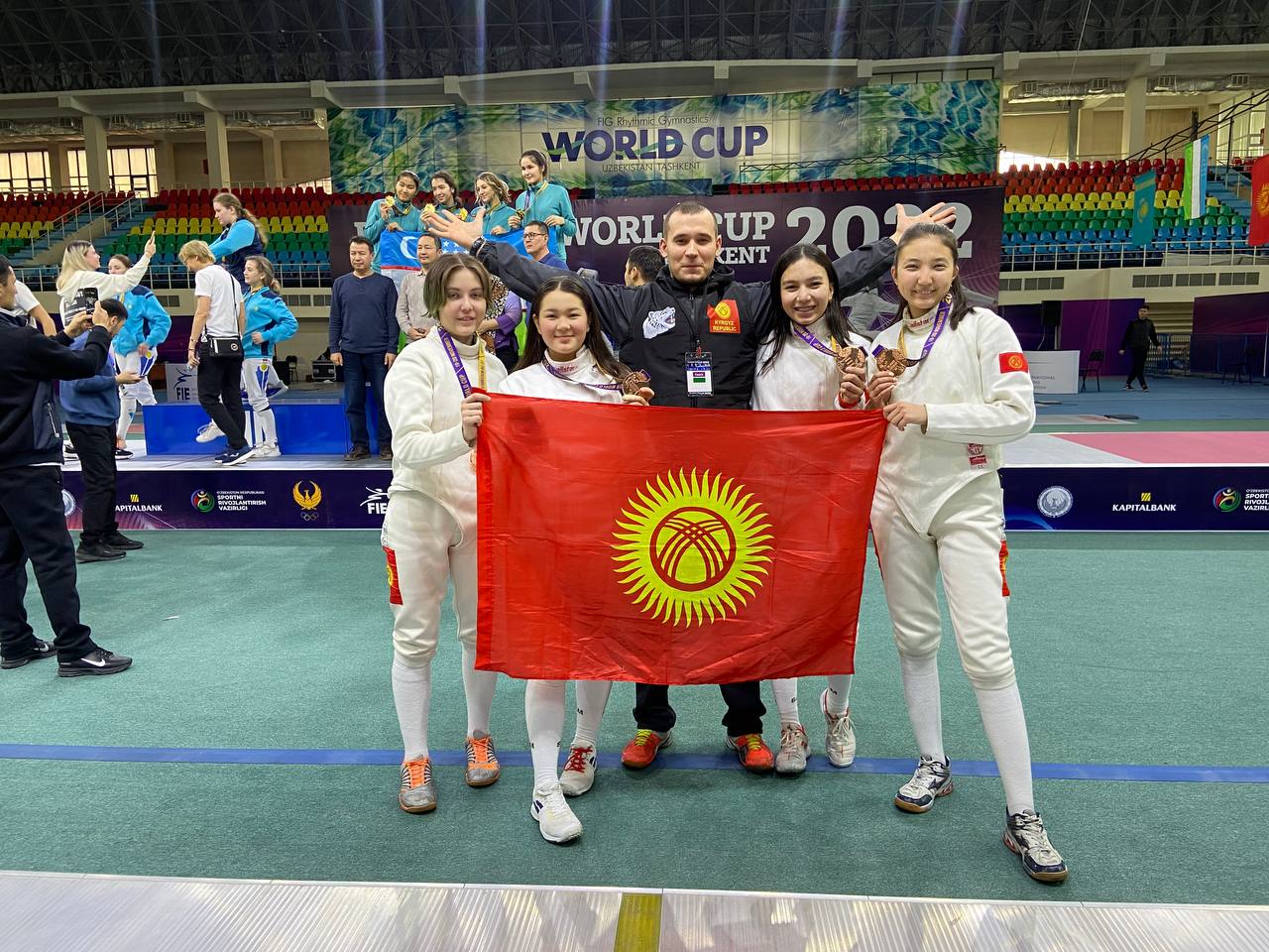 На этапе Кубка мира среди юниоров (девушки) по шпаге, прошедшего в Ташкенте, кыргызстанки заняли третье место в командном зачете. Об этом сообщила Федерация фехтования КР.