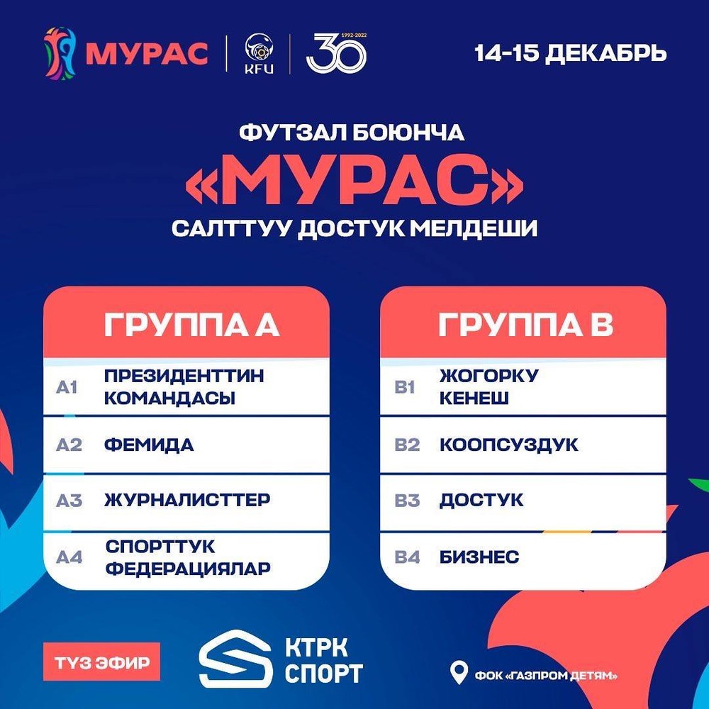 Первый турнир «Мурас» прошел в декабре 2021 года, победителем стала команда «Өнөр». В мае текущего года команда администрации президента выиграла второй турнир. Оба раза звание лучшего бомбардира получал Садыр Жапаров. Приз в 1 миллион сомов передали детским домам.