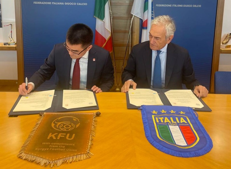 На встрече представителей Кыргызского футбольного союза с руководством Итальянской федерации футбола (FIGC) подписан меморандум о сотрудничестве. Об этом сообщили в КФС.