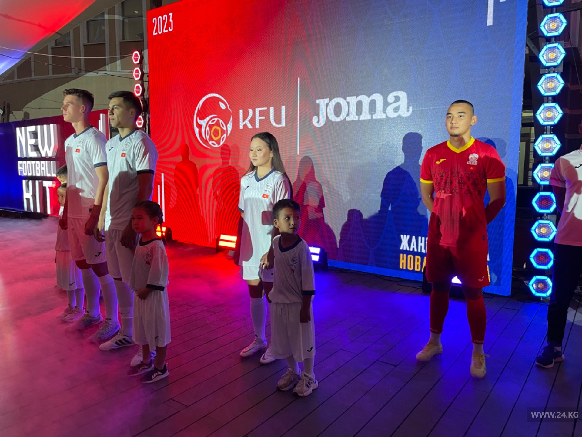 Напомним, предыдущая модель формы была разработана и представлена год назад - в сентябре 2022-го. С воротников и манжетов футболки убрали белые полоски, но остались герб футбольной сборной аббревиатура — KFU (Кыргызский футбольный союз). Спонсором сборной остается испанский бренд Joma.