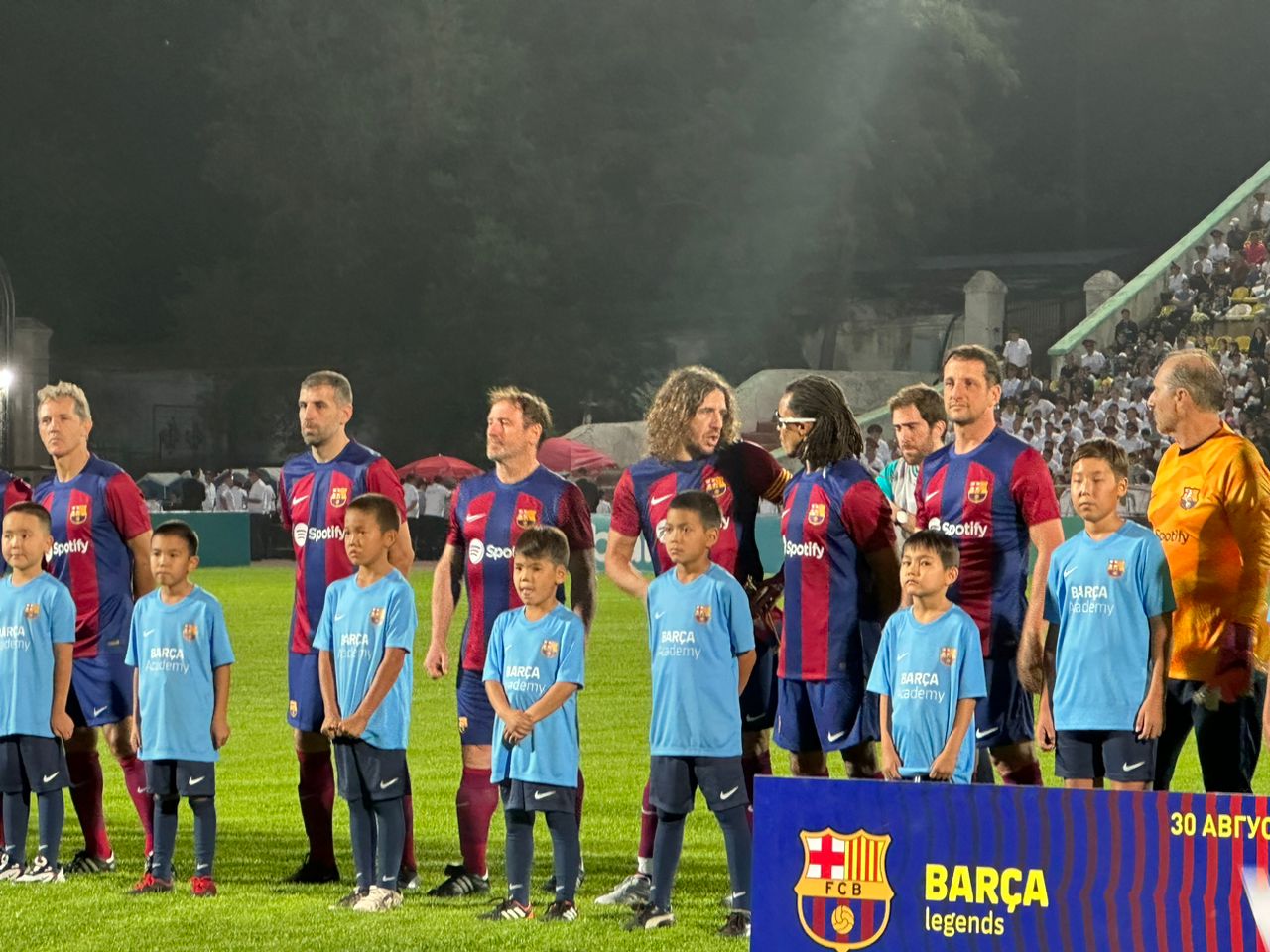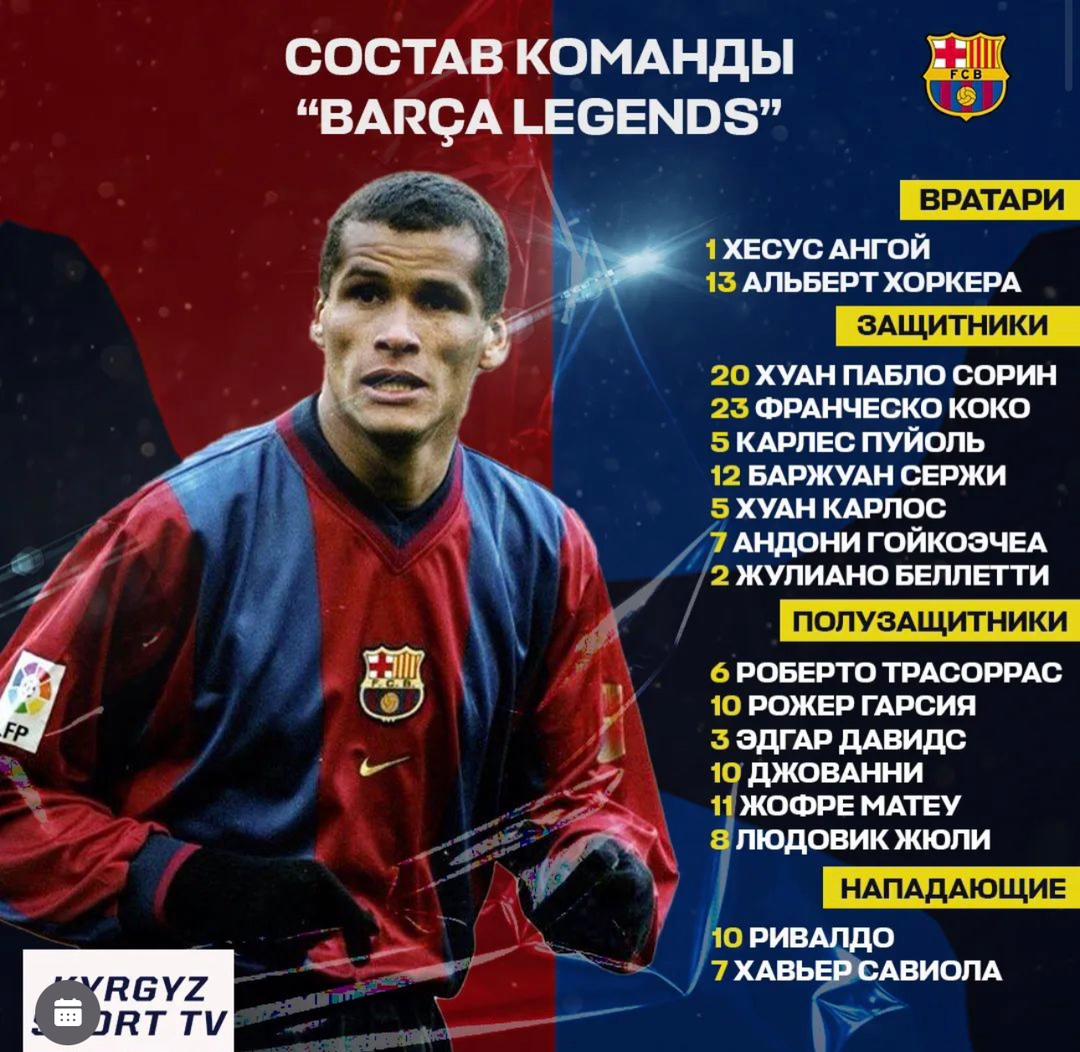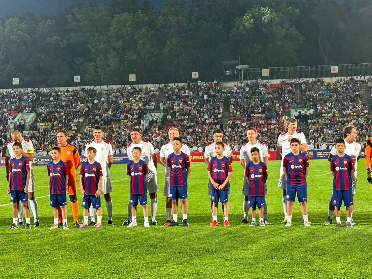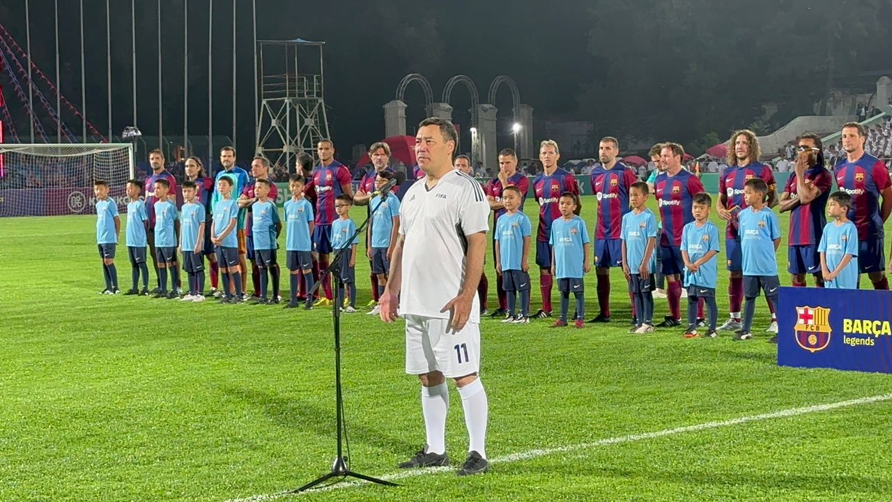В Бишкеке начался матч между легендами клуба «Барса» и Азии. Каждый тайм будет длиться 30 минут.