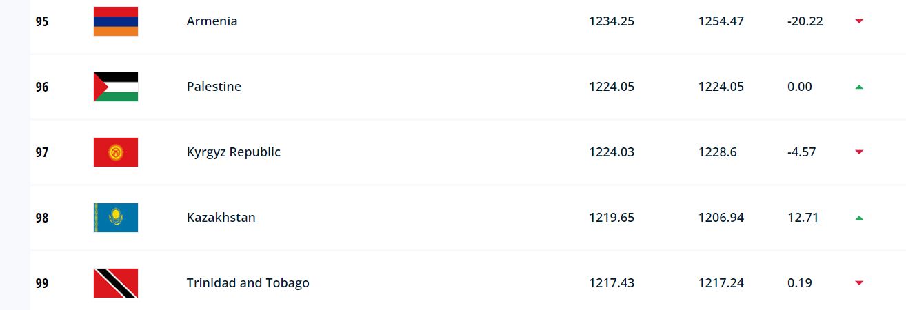 Напомним, женская сборная Кыргызстана занимает 128-ю позицию из 188.