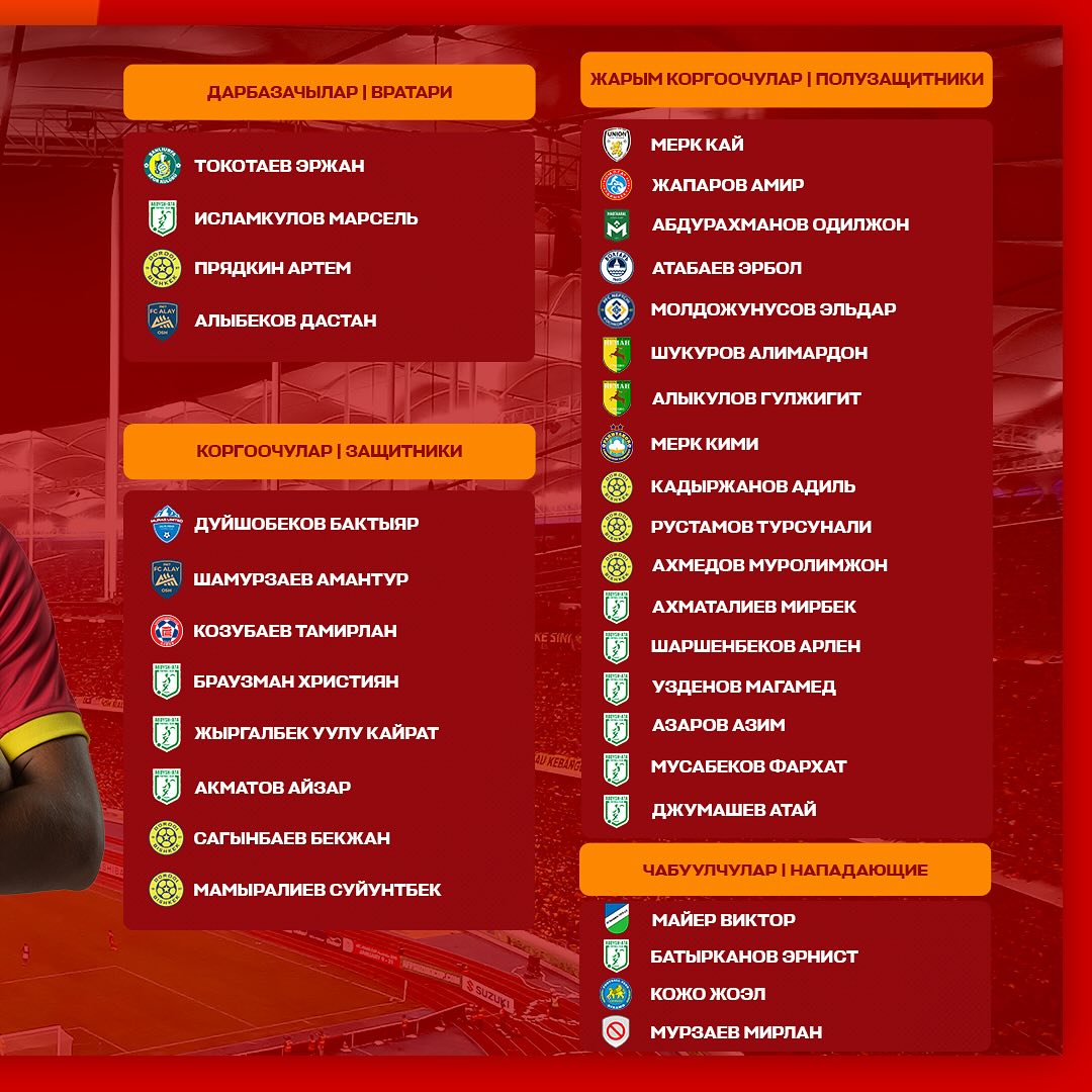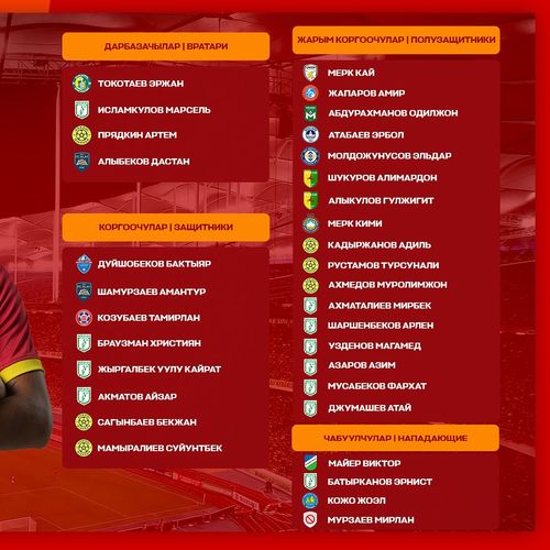 Стал известен расширенный состав национальной сборной Кыргызстана на отборочные матчи чемпионата мира — 2026 против Малайзии и Омана. Об этом сообщил Кыргызский футбольный союз в соцсетях.
