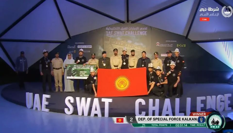 Команда «Калкан», представленная военнослужащими сил специального назначения Девятой службы ГКНБ Кыргызстана, по итогам пяти дней заняла четвертое место в международных соревнованиях UAE SWAT Challenge 2024 в Дубае. Об этом сообщает сайт соревнований.