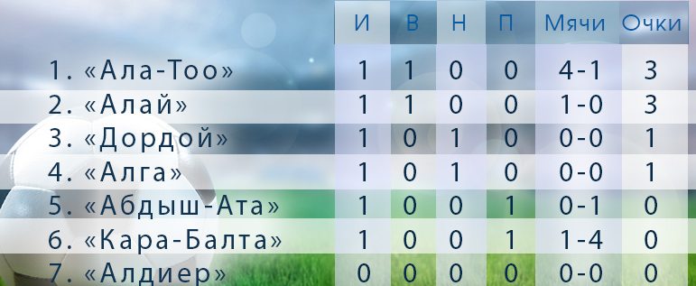 По ее данным, поединок первого тура национального первенства состоялся накануне в Бишкеке. Итоговый счет – 0:0. «Игра была интересная и обоюдоострая. Сезон только начинается. У нас есть над чем работать», - отметил главный тренер «Алги» Александр Бельдинов.