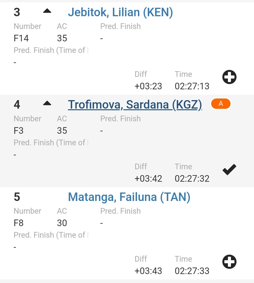 Ее время — 2 часа 27 минут 32 секунды.