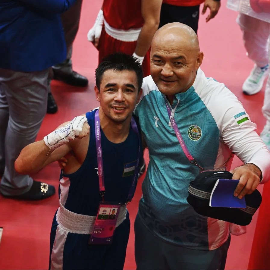 Фото МОК. Узбекский боксер Хасанбой Дусматов — двукратный чемпион Олимпиады и его личный тренер Зиятдинбек Тойгонбаев