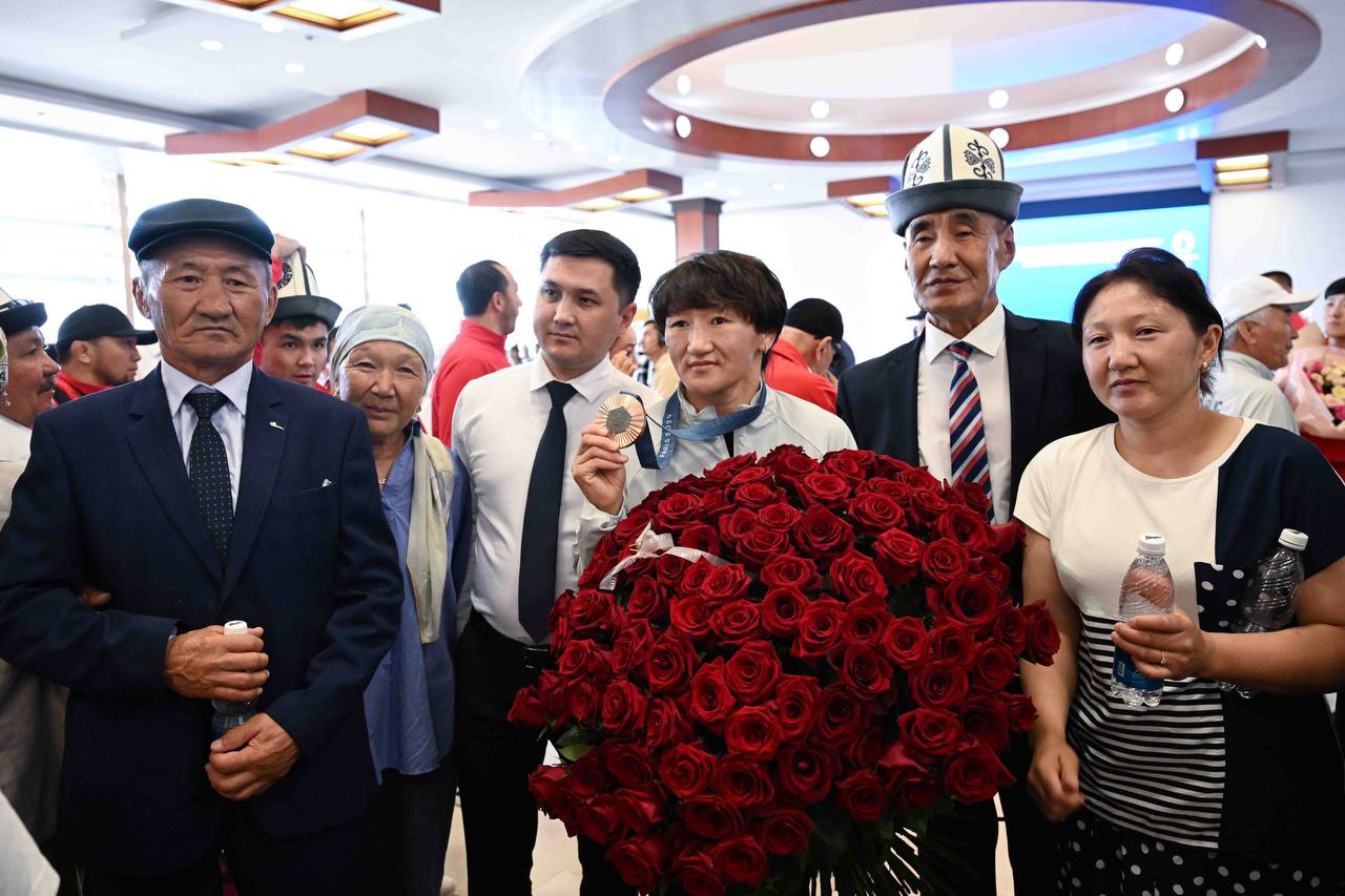 В аэропорту «Манас» их встретили заместитель председателя кабмина Эдиль Байсалов, министр культуры, информации, спорта и молодежной политики Алтынбек Максутов, государственный секретарь Суйунбек Касмамбетов, фанаты и близкие атлетов.