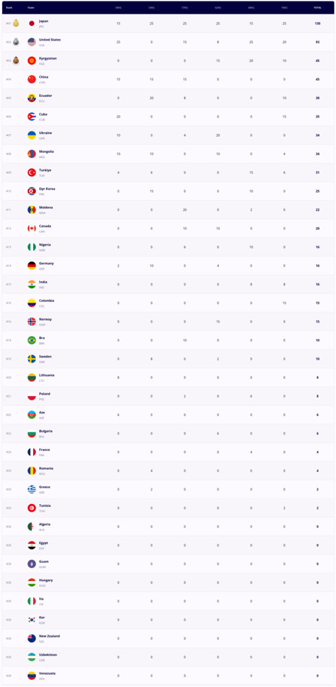 Женская сборная Кыргызстана по борьбе — в тройке стран — лидеров Олимпиады-2024. Такие данные приводятся в таблице итогов Игр в Париже.