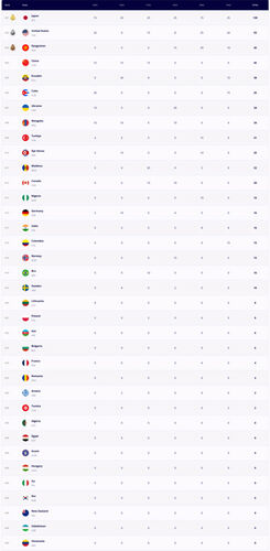 Таким образом женская команда набрала 45 очков, что позволило ей занять почетное 3-е место в командном зачете среди 36 стран.