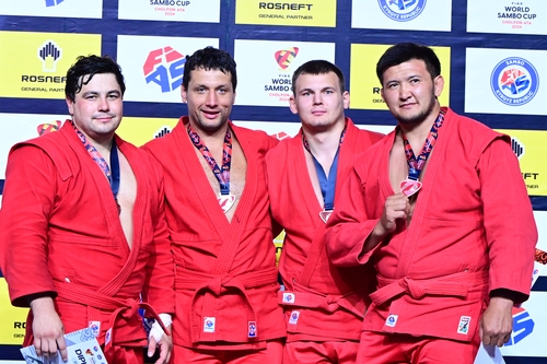 Золото ушло представителю команды ФИАС-1 Артему Осипенко, второе место у его товарища Алексея Мерзликина. На третьем месте с бронзовой медалью Бекболот Токтогонов. Он разделил пьедестал с другим самбистом из ФИАС-1 Арсением Малитски.