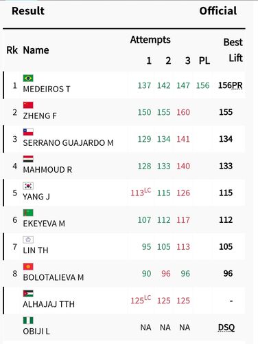 Кыргызстанка Миргуль Болоталиева заняла восьмое место в турнире по пауэрлифтингу на Паралимпийских играх в Париже. Об этом сообщается на сайте соревнований.