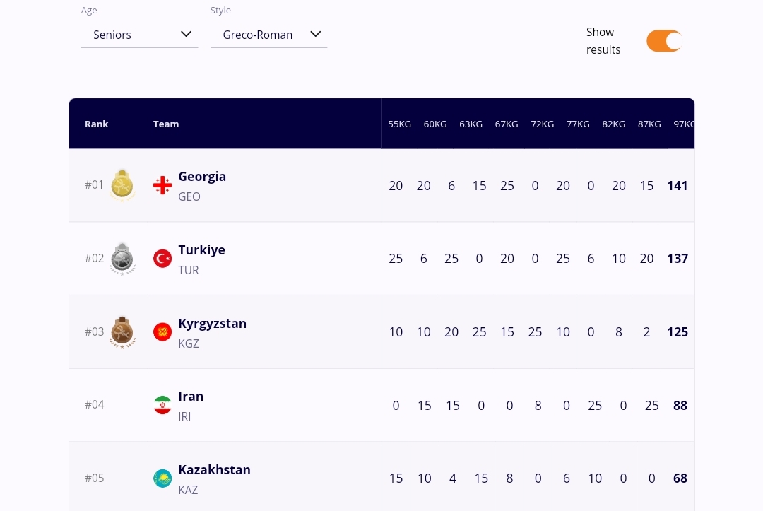 Сборная Кыргызстана по греко-римской борьбе стала третьей в общекомандном зачете.