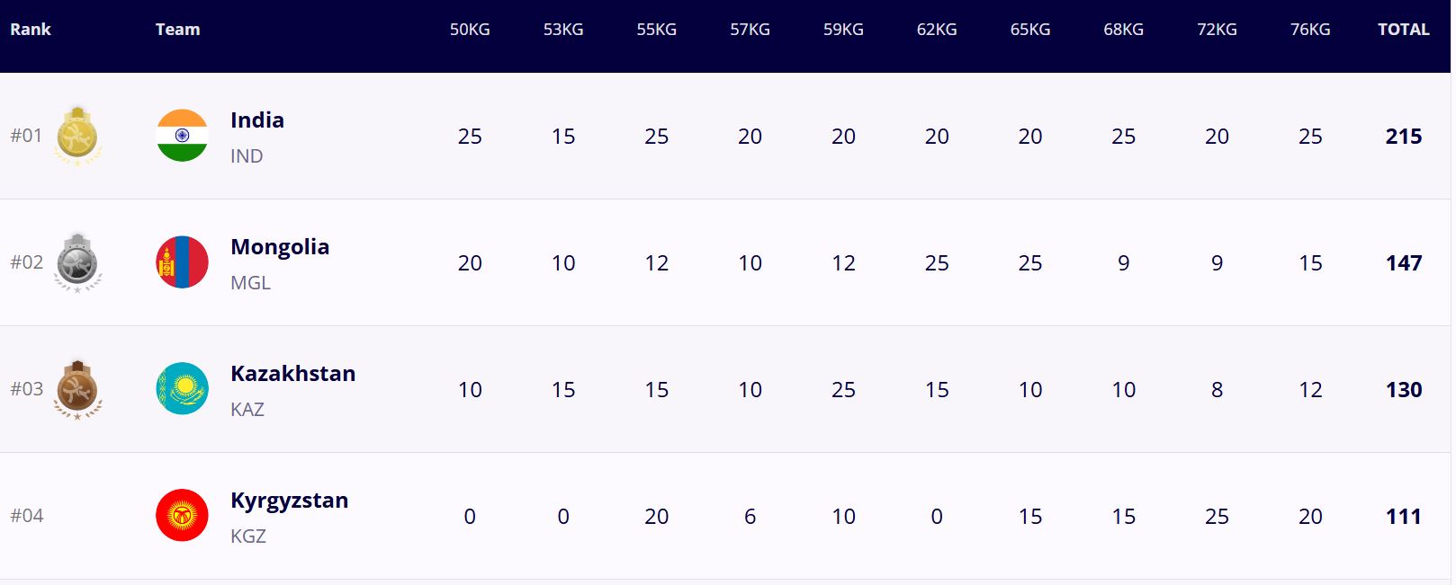 Сборная КР заняла четвертое общекомандное место. Первые три у Индии, Монголии и Казахстана.