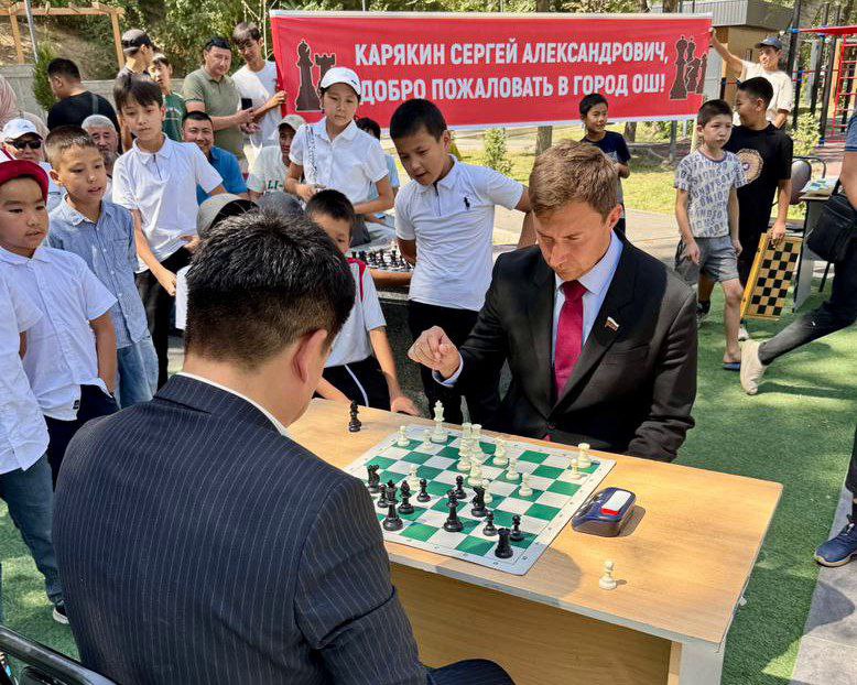 В Оше прошла встреча юных шахматистов с самым молодым в истории гроссмейстером Сергеем Карякиным. Впервые за последние несколько десятилетий юг Кыргызстана принимал топ-гроссмейстера мирового уровня, сообщает Русский дом в Бишкеке.